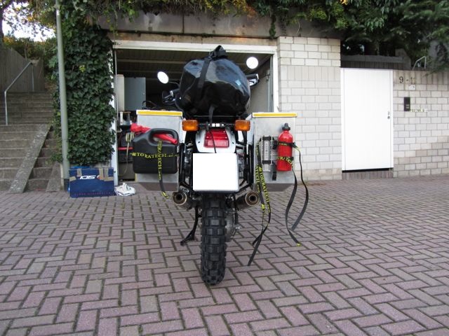 Leider war die Freude nur von kurzer Dauer. Bereits am darauf folgenden Tag, am Montag den 24. Oktober, fanden die letzten Arbeiten an dem Motorrad statt. Die Zylinderköpfe wurden nachgezogen, die Koffer und Handprotektoren montiert, so dass die Gute endlich um 03:00h nachts (oder besser morgens) ihre letzte Fahrt Richtung Motorradtransportbox antreten konnte. Erste Panik stellte sich ein als ich nur ca. 20min später auf der Autobahn liegen geblieben bin. Glücklicherweise lag es nur an Spritmangel 😉