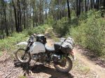 Hier bin ich von einer gut präparierten Schotterpisten in eine kleine Minenstrasse eingefahren um eben diese zu besichtigen. Leider handelt es sich hierbei um eher schlechtere Waldwege als um Strassen und bei dem Gedanken auf solchen Pisten, in bergigen und einsamen Regionen, alleine zu fahren bzw. zu stürzen, war mir nicht wirklich wohl und habe die Suche nach der Mine irgendwann aufgegeben. Grundsätzlich sind diese Gravelpit oder Unpaved Roads aber in einem sehr guten Zustand und dementsprechend sehr leicht zu befahren. Meistens sind es Schotterpisten mit etwas Wellblech. Die Abschnitte, an denen es tiefere Löcher oder gar brutales Wellblech, eventuell sogar steile Auf und Abfahrten sowie Wasserdurchfahrten gibt, sind auf den Durchgangsstrassen eher selten. Dafür muss man schon u.a. auf eine dieser Minenwege 😉 Ich bin jedenfalls froh mit meiner „leichten“ Reiseeinduro hier zu sein. Also, bisher alles, auch für den durchschnittlichen Mopedfahrer zu meistern.