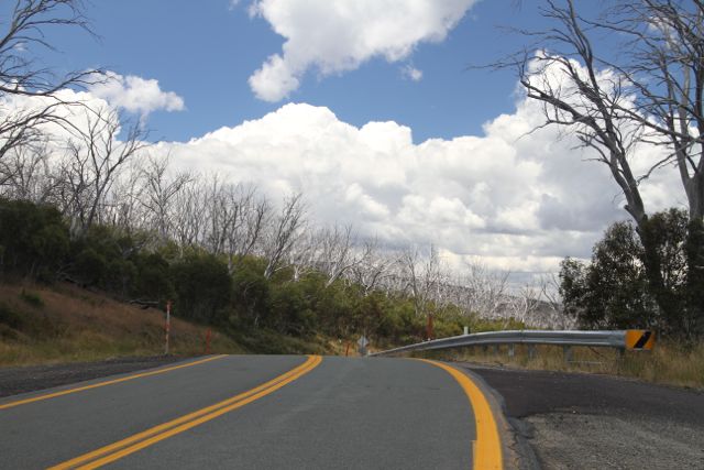 Der Strassenbelag der Piste durch den Namadgni National Park, war abgetragen und an der Oberfläche befand sich Sand. Nicht schlecht um die Gummikuh mal auf sandigen Wegen zu testen. Nach schweißtreibenden 80km, bin ich dann auf die Asphaltstrasse gekommen, welche mich über die Tooma Road und Alpine Road in die Snowy Mountains führen sollte. Auch hier musste ich wieder eine neue Erfahrung machen.