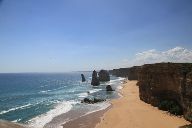 Die Great Ocean Road ist 266km lang, beginnt hinter Torquay und schlängelt sich südwestlich in Richtung Warrnambool. Leider führt nur ein Bruchteil dieser Strecke am südlichen Ocean entlang. Auf großen Streckenabschnitten ist dieser nur zu erahnen, aber nicht zu sehen. Dafür fährt man im Hinterland durch Eukalyptuswälder, in denen sich, neben haufenweise Touristen, sogar ein paar Koala tummeln. Auf dem Weg zum Cape Otway, mit seinem bekannten