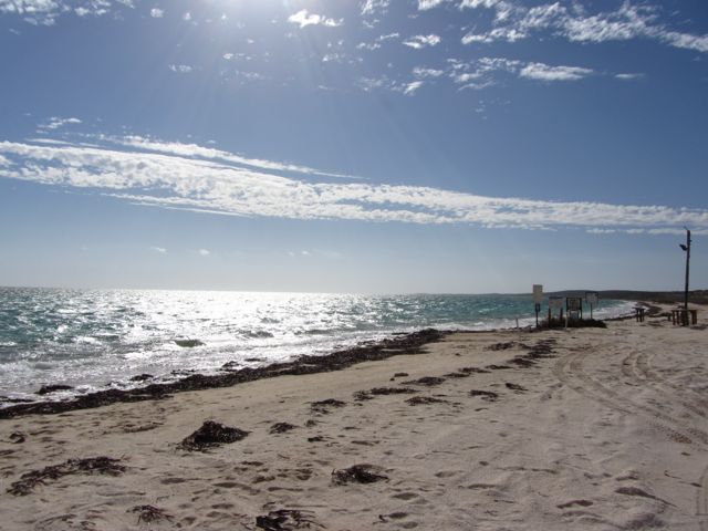 Wikipedia schreibt: „Der Shell Beach ist ein ca. 40 km langer Küstenstreifen an der westaustralischen Shark Bay, der aus einer bis zu 10 Meter dicken Schicht aus Milliarden von Herzmuscheln der Art Fragum erugatum besteht.“
