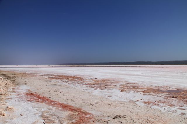 Doch bevor ich auf diesem Weg einkehre, fahre ich noch an einem Seen, in dem natürliches Salz durch Verdunstung gewonnen wird und durch den Kalbarri National Park.