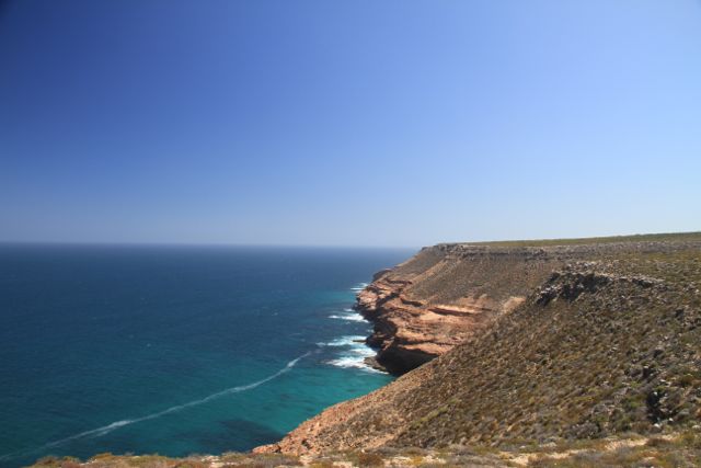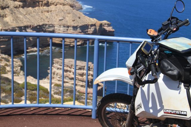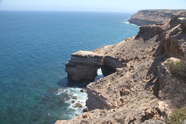 Der Kalbarri National Park, etwa 100km nördlich von Geraldton, ist neben seinen besonderen Sediment-Steinformationen (Tumbloga Sandstein), insbesondere für seine Vielfalt an Wildblumenarten bekannt. Viele davon (einundzwanzig Varietäten) sind endemisch und verändern die Landschaft und das Erscheinungsbild des Nationalparkes. Bei einem kurzen Zwischenstopp im Hafen von Kalbarri werde ich „aufgefordert“, in der Zeit zwischen Juli und November wiederzukommen. Zu dieser Zeit soll sich der Küstenabschnitt in ein buntes Meer aus verschiedenen Farben verwandeln. Die bunten Farben kommen von den verschiedenen blühenden Pflanzenarten wie zum Beispiel den „Smokebushes“,  den Starflowers (habe noch keine ordentliche Übersetzung dafür gefunden) sowie vielen weiteren Pflanzenvarietäten. Desweiteren gibt es auf der Küstenstrecken ein paar atemberaubende Ausblicke auf die Steilküste. Nicht schlecht und wieder ein neues Bild des indischen Ozean und der australischen Küste.