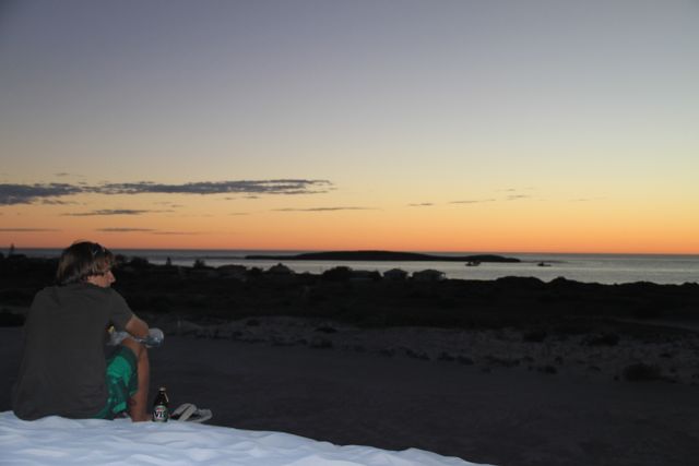 Wenigstens konnten die windarmen Tage noch genutzt werden. Dieter ist nach seinem Photoshot in Perth für ein paar Tage bei mir vorbeigekommen. Neben einem kleinen „Training“ beim Windsurfen (meine letzte Aktion auf dem Wasser) haben wir die Tage, mit einem Rausschmiss aus einer Kneipe, ein paar Runden Backgammon, einem Paypal-Betrug aus Malaysia, ein paar tollen Sonnenuntergängen, einer Polizeiverfolgungsjagd und verdammt teuerem Bier verbracht.   Also, keine Langweile, dafür wenig Erfolg 😉
