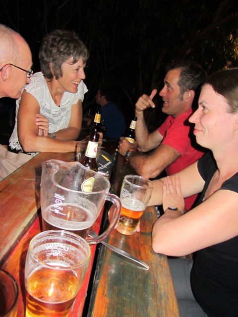 Jupieh, es hat geklappt. Ich bin in Alice Springs. Gegen 17:30h schlage ich bei Claudia auf. Werner kommt ein paar Minuten später dazu. Nachdem wir ein wenig über die letzten Tage gesprochen haben, baue ich mein Zelt auf und wir fahren zusammen mit Beat, einem Schweizer 800GS Fahrer, in die Backpacker – Kneipe „Nannies“. Hier haben wir uns mit Tom und Vanessa verabredet. Da Tom am nächsten Tag weiter Richtung Sydney muss, freue ich mich, dass wir den letzten Abend bei einem Bier und lecker Essen gemeinsam verbringen können. Ein gelungener Abschluss nach drei gemeinsamen Fahrtagen. Nachdem die arbeitende Bevölkerung früh müde und damit ins Bett gestartet ist, sind Tom, Vanessa und ich noch in eine weitere Kneipe gefahren.