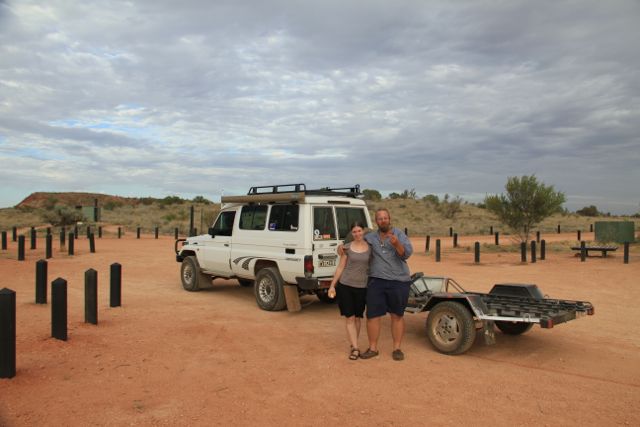 Am nächsten Tag allerdings befinden wir uns in Stevens 4×4, mit Anhänger, und fahren Richtung Süd-Australien. Der Plan ist, Steven unterwegs aufzusammeln und damit sein geschundenes Kreuz ein wenig zu entlasten. Auf dem Weg Richtung Süden, setzt Werner plötzlich den Blinker und fährt mit uns in das Rainbow Valley. Ich muss lachen, noch drei Tage zuvor sind Tom und ich daran vorbeigefahren und haben uns, zugunsten einer frühen Ankunft in Alice, gegen eine Fahrt in das Valley entschieden. Mal wieder Glück gehabt. Steven kommt uns ungefähr 150km südlich von Alice Springs entgegen und freut sich, die letzten KM im 4×4 nach Hause zu fahren. Ich hätte mich bereits nach einer Strecke von 1000km darüber gefreut 😉
