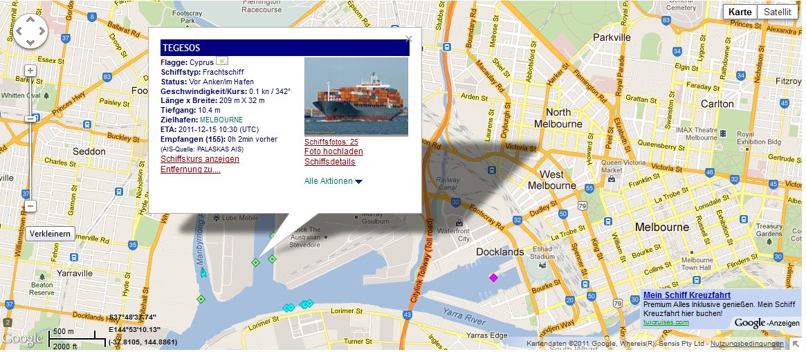Die TEGESOS ist am 11.Dezember von Freemantle nach Melbourne aufgebrochen, wo sie am 15. Dezember um 00:30h MEZ, also vor 20h, einlaufen sollte.
