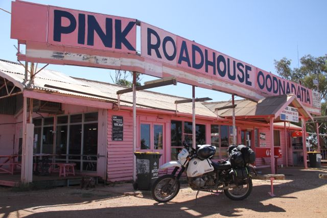 . Alles läuft gut, keine Stürze. Auch wenn dieses ein sehr schöner Fahrtag war, so freue ich mich auf Oodnadatta und seinem Oodnaburger. Diesen Burger gibt es im Zentrum von Oodnadatta im Pink Roadhouse. Dieses Roadhouse wurde in den siebzigern von zwei Hippies gegründet und ist mittlerweile ein landesweiter Begriff. Have you ever been at the pink Roadhouse? I have, and it was lovely ! Wir sind hier die einzigen Gäste und verbringen den Abend bei Bier und einen Sprung in den Pool des Pink Roadhouse.